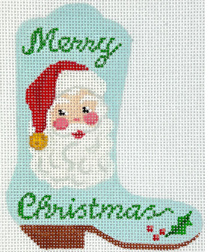 Kate Dickerson Needlepoint Collections Mini Cowgirl Boot - "Merry Christmas" Santa Needlepoint Canvas