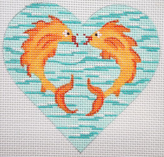 Kate Dickerson Needlepoint Collections Mini Heart Kissy Fish on Sea Needlepoint Canvas