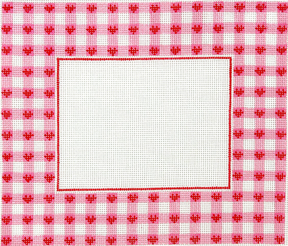 Kate Dickerson Needlepoint Collections Picture Frame Pink Gingham with Red Hearts Rectangle Needlepoint Canvas
