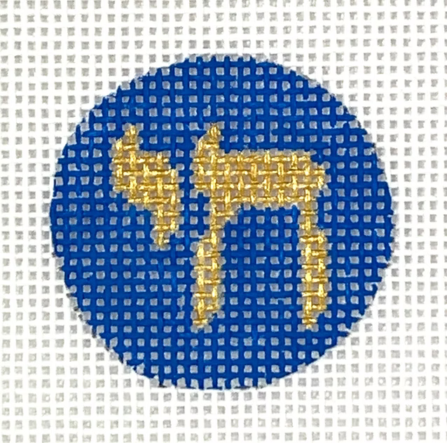 Kate Dickerson Needlepoint Collections Planet Earth Key Ring Insert Gold Chai on Navy Blue Needlepoint Canvas