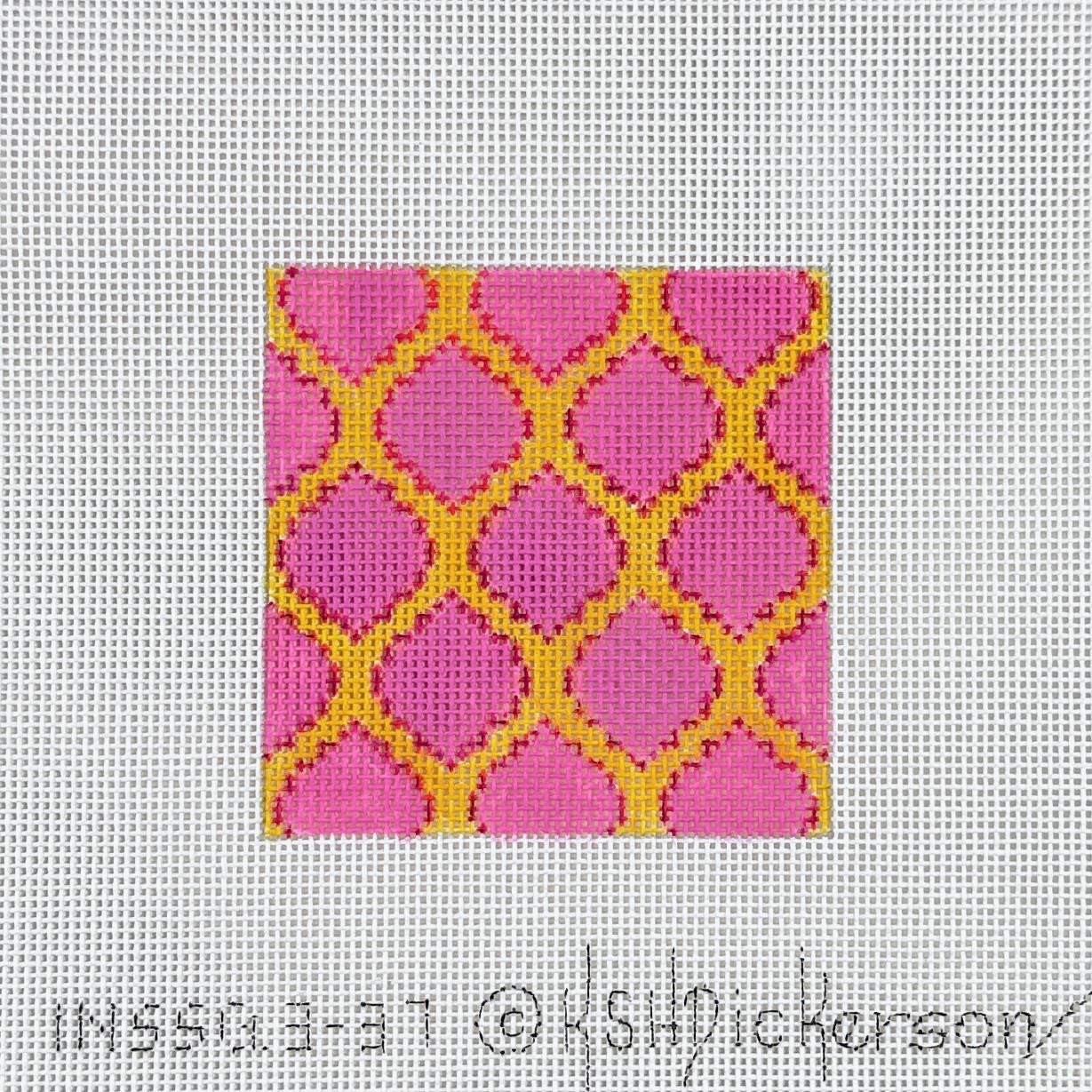 Kate Dickerson Needlepoint Collections Quatrefoils in Tangerine and Pink Needlepoint Canvas