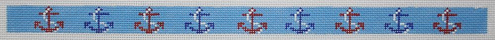 Kate Dickerson Needlepoint Collections Sunglass Strap - Red, White & Blue Anchors on Cobalt Blue Needlepoint Canvas