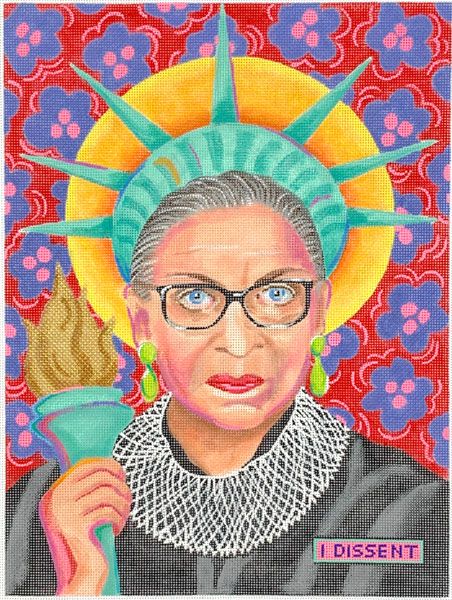Kate Dickerson Needlepoint Collections Supreme Ruth Bader Ginsburg with Lace Collar & Liberty Torch Needlepoint Canvas