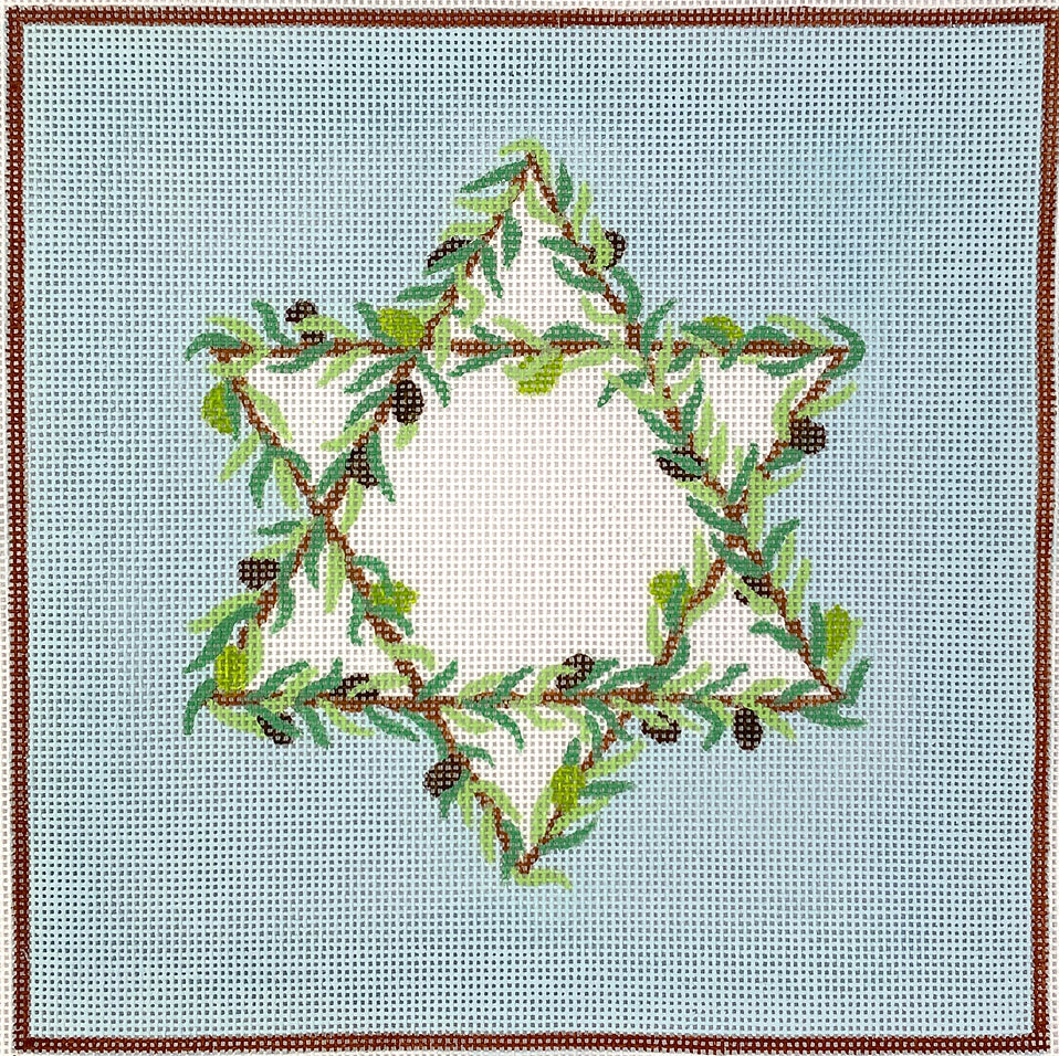 A beautiful hand painted needlepoint design from Kate Dickerson Needlepoint Collections. Tefillin Bags.
