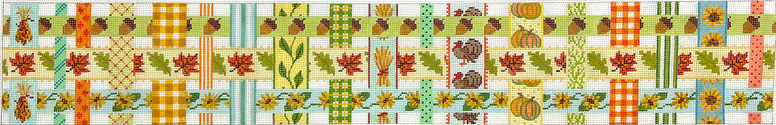Kate Dickerson Needlepoint Collections Thanksgiving Fall Basket Woven Ribbons with A Thanksgiving Theme Needlepoint Canvas