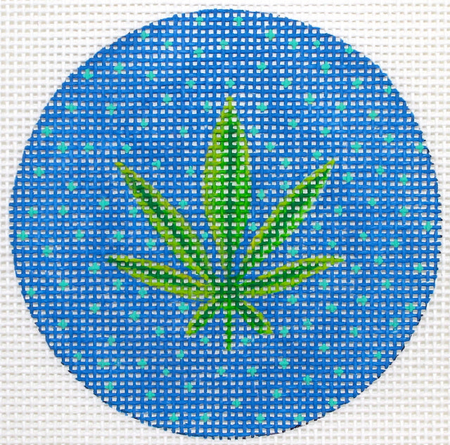 Kate Dickerson Needlepoint Collections Weed Round On Blue Needlepoint Canvas
