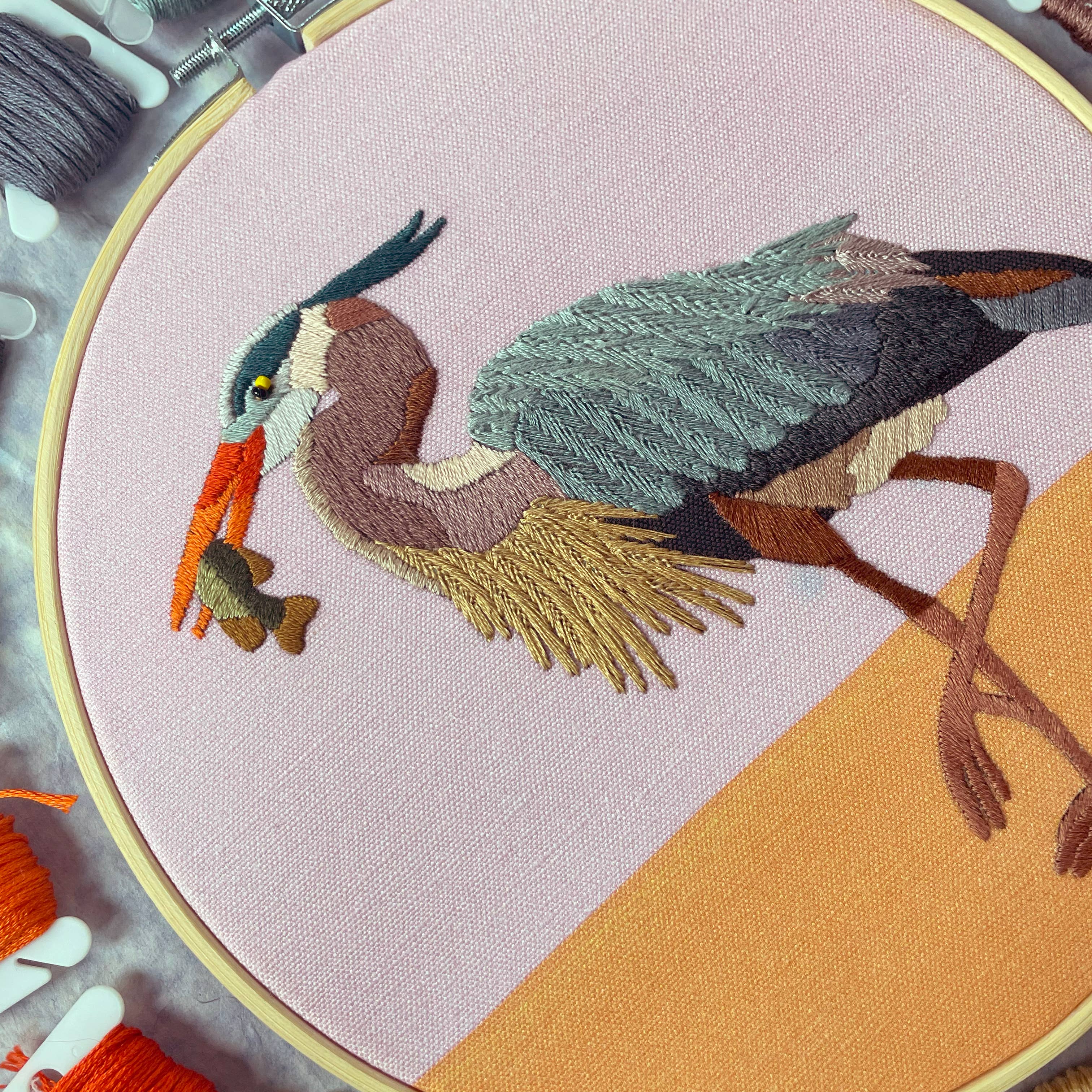 This kit by Kate Wyatt Fine Art is based on one of Kate's watercolor paintings. There is only a small amount of beadwork on this kit (the eye). The kit includes everything you need to get started. Embroidering is a fun and relaxing way to keep your brain busy and cut down on screen time. While there is no “right” way to embroider, this kit provides written instructions for determined beginners and beyond to create a beautiful piece of artwork.