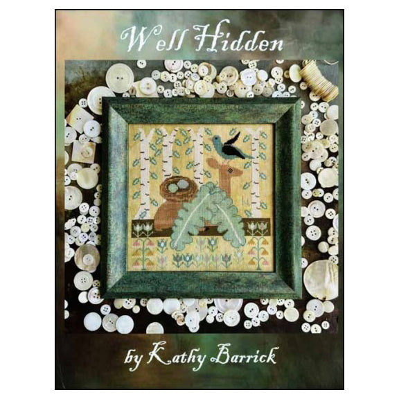 This is a printed cross stitch pattern by Kathy Barrick. It features a sweet deer hanging out with his buddy in a birch forest. As stitched, the example uses Needlepoint Inc silk on 40 count linen in the color Sand from Fiber On A Whim. A DMC color conversion chart is available.