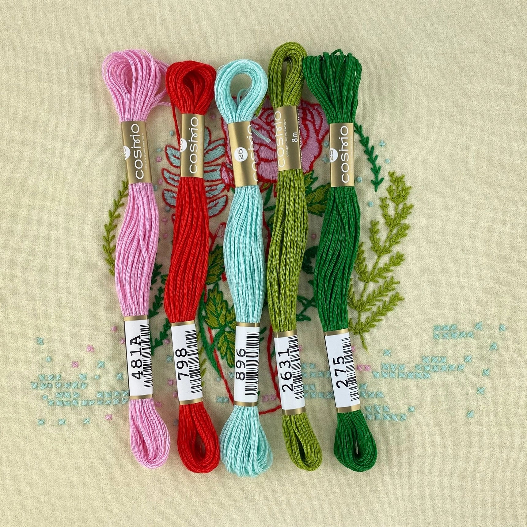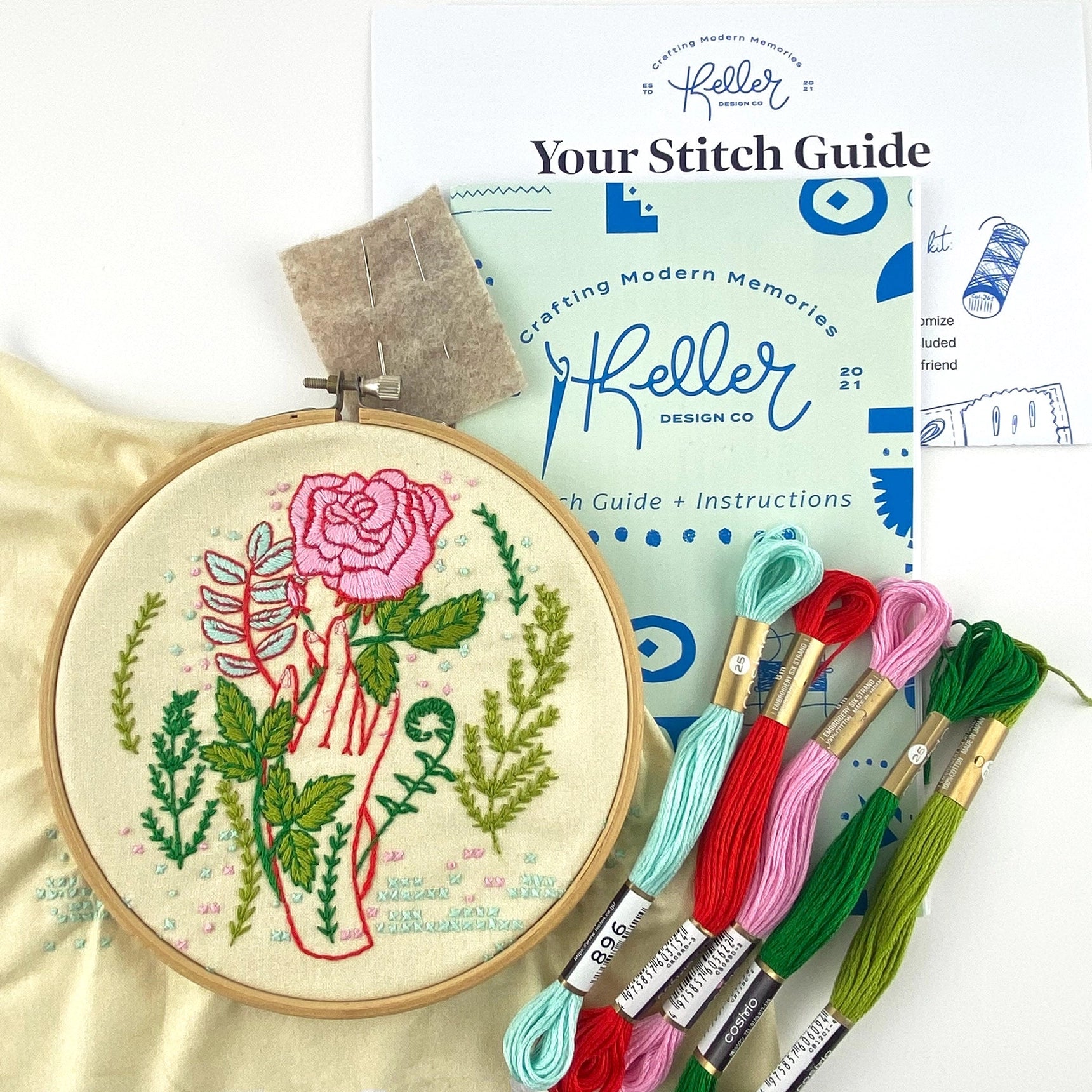 Gorgeous printed fabric made from Amy L. Frazer's original drawings of flora in Portland - roses from their Rose Gardens, ferns and other green things! It feels modern yet vintage with the addition of a few cross stitches. Finished piece makes a great keepsake or gift.