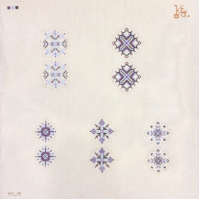 This hand painted needlepoint canvas by Key Point Canvases features 5 different 2 sided snowflakes that can be finished as a garland.