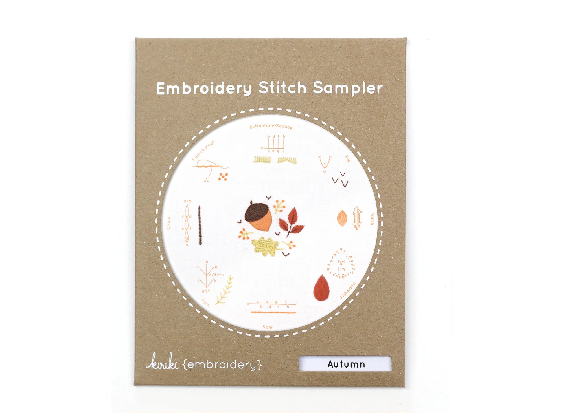 The Autumn Embroidery Stitch Sampler is a great introduction to stitches used in Kiriki Press and other embroidery patterns.