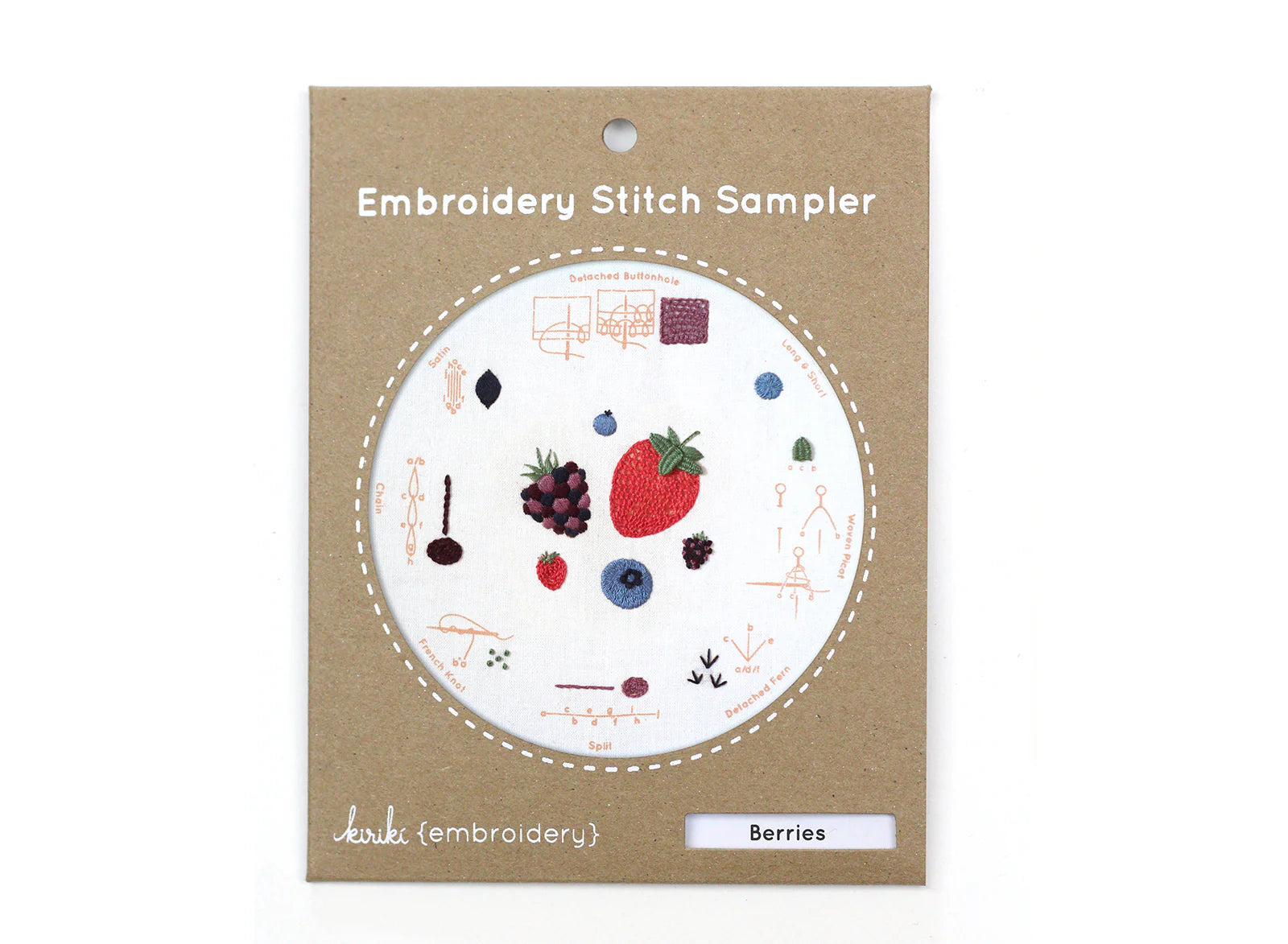 The Berries Embroidery Stitch Sampler is a great introduction to stitches used in Kiriki Press and other embroidery patterns.