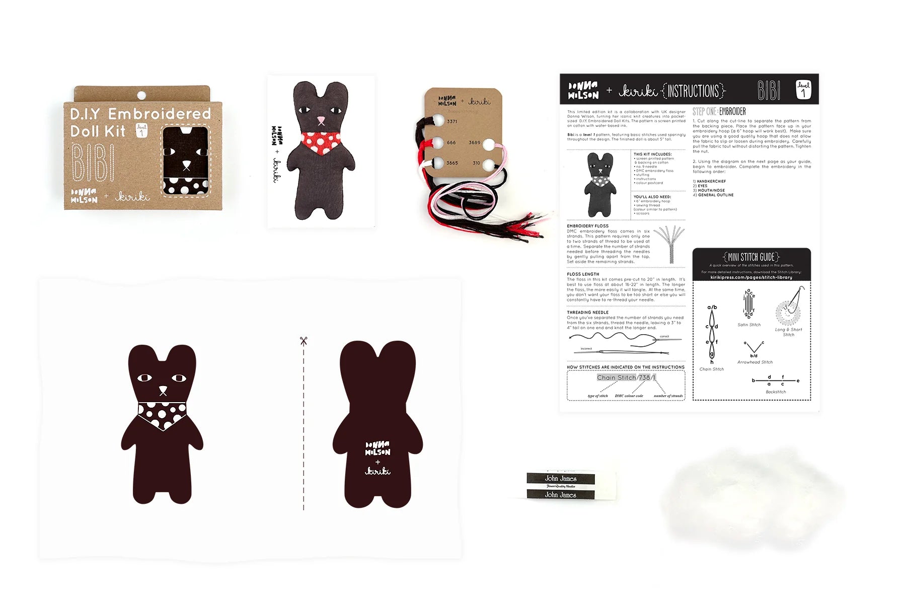 D.I.Y. Embroidered Doll Kits include: