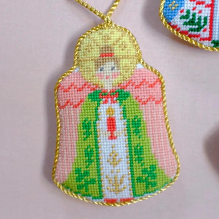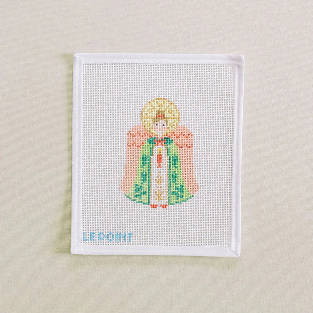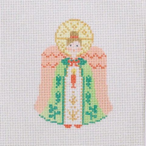 This hand painted needlepoint canvas from Le Point Studio features a pretty angel with holly pattern robe. Finished examples shown for inspiration, materials and finishing services sold separately.