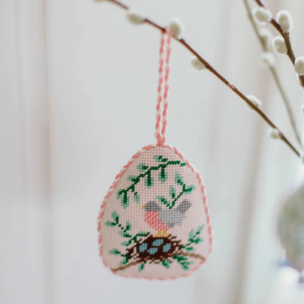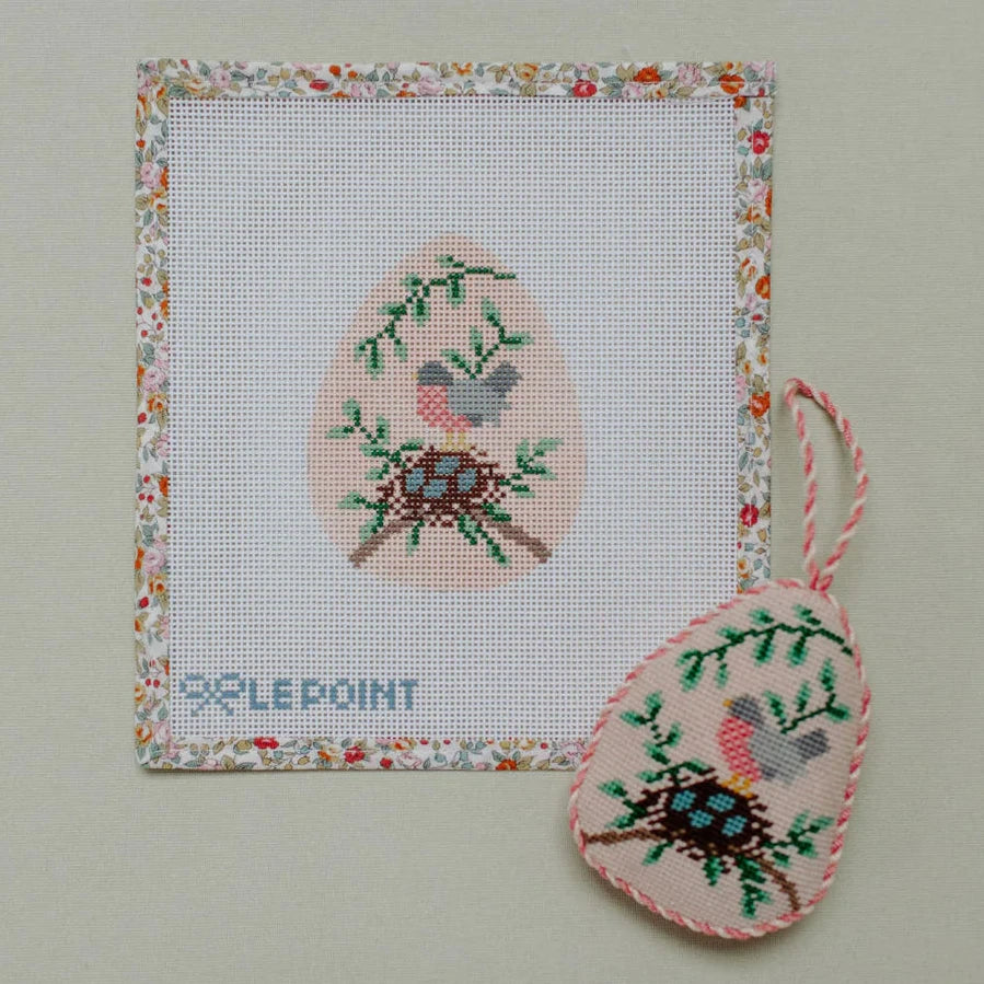 This hand painted needlepoint egg canvas from Le Point Studio features a pretty robin watching over a nest full of eggs. Finished examples shown for inspiration, materials and finishing services sold separately.