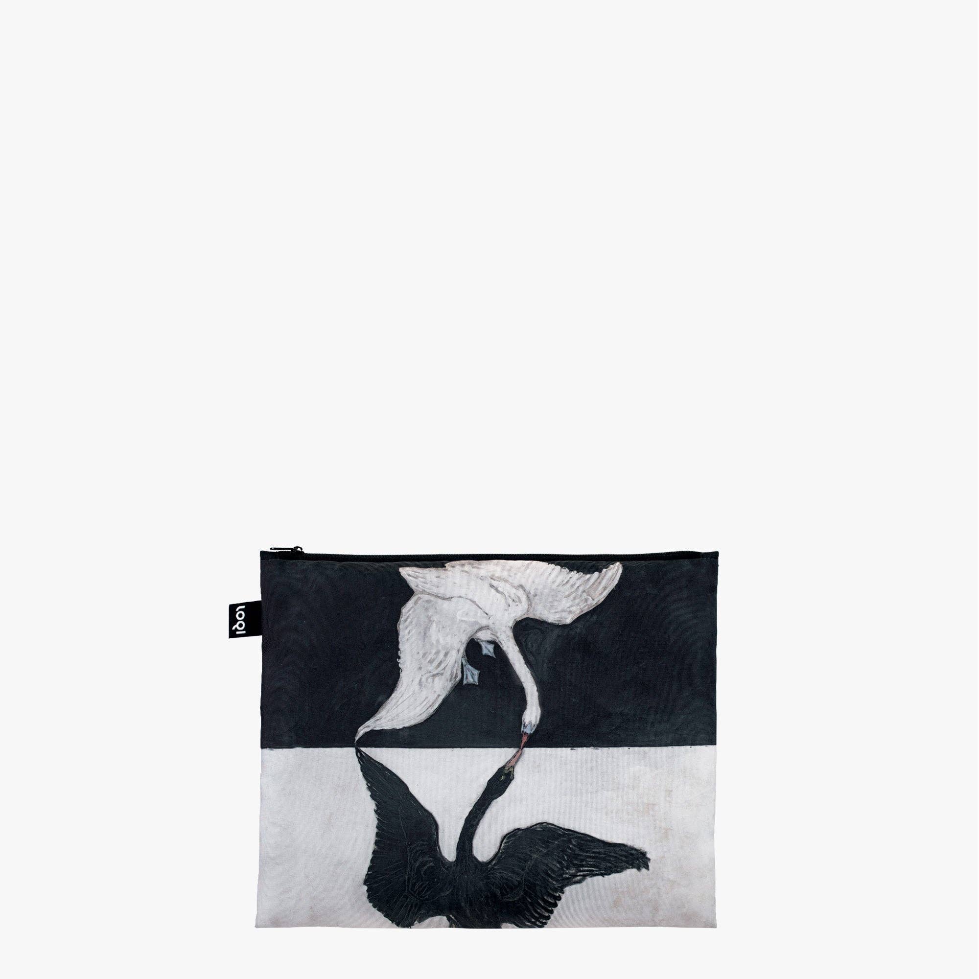 This set of 3 project bags from LOQI showcases pioneers in abstract art with Hilma of Klint and Piet Mondrian. Hilma of Klint created her first work in 1906, ahead of Mondrian, Kandinsky, Delaunay and Malevich. She requested that her art not be shown during her lifetime. Now she is receiving the recognition she deserves. This set features The Swan from 1914-15 and The Ten Largest Childhood from 1907. The midi bag features New York City 3 by Mondrian. The bags are lightweight, water resistant, food safe, washable and very eco friendly.