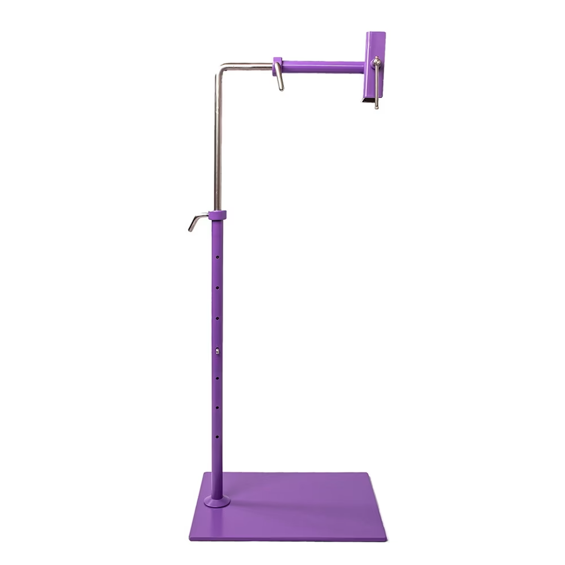 This Lowery Workstand in Violet is powder coated in a lovely purple. Delivered to you in a manageable box, ready for easy home assembly. This is a complete workstand with side clamp head. Why do we love the Lowery Workstands? They are simple, sturdy, and oh-so handy. Thanks to the well designed clamps, they work with almost any frames, stretcher bars, and embroidery hoops. So clamp in your favorite needlework frame and experience the beauty of stitching with both hands free. Lowery workstands are built by hand and built to last. They waste hardly a scrap of raw material in the manufacturing process, and all the water they use in manufacturing processes is harvested rain water. Approximate adjustments: Horizontal: 6 ½" - 9 ½" Vertical: 20"-34 ½" Approximate weight = 6.6 lbs