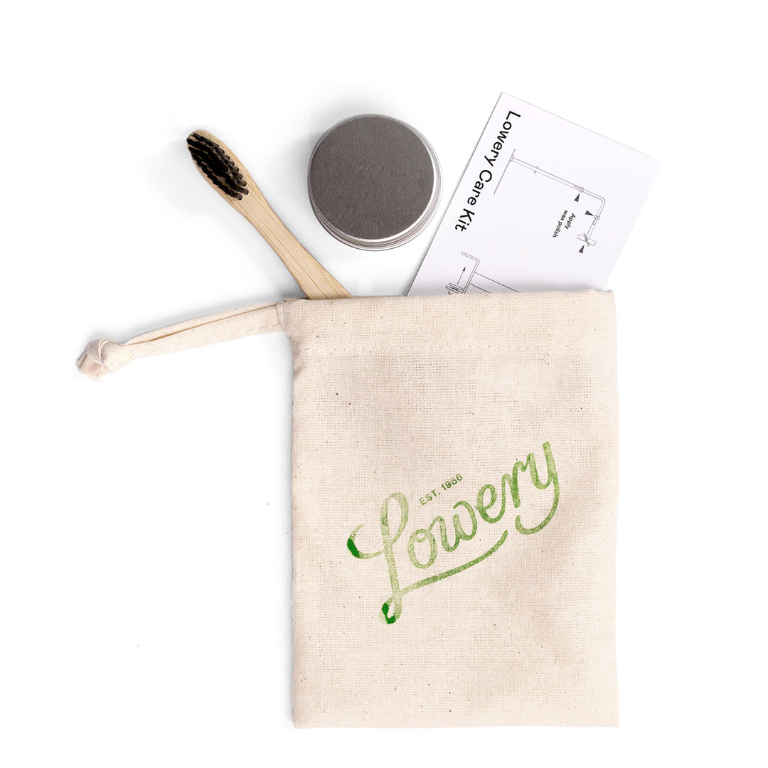 The Lowery Workstand Care Kit keeps your screws in good working order. This lovely little cotton drawstring bag comes with a small brush, a 15ml pot of wax polish and instructions to help keep the threads of your screws lubricated.