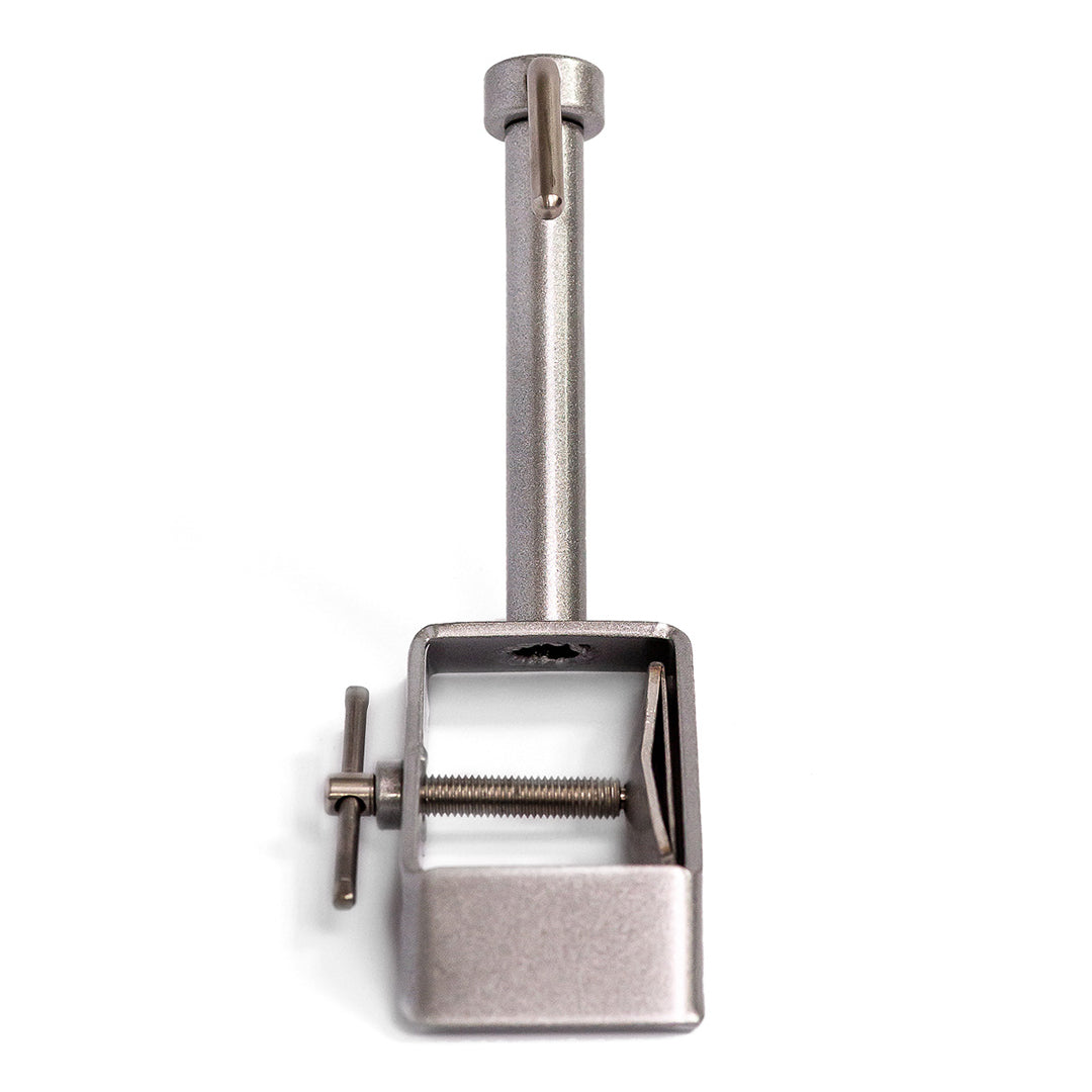 The corner clamp head is top choice for tubular frames. This one works with the powder coated silver/grey workstand.