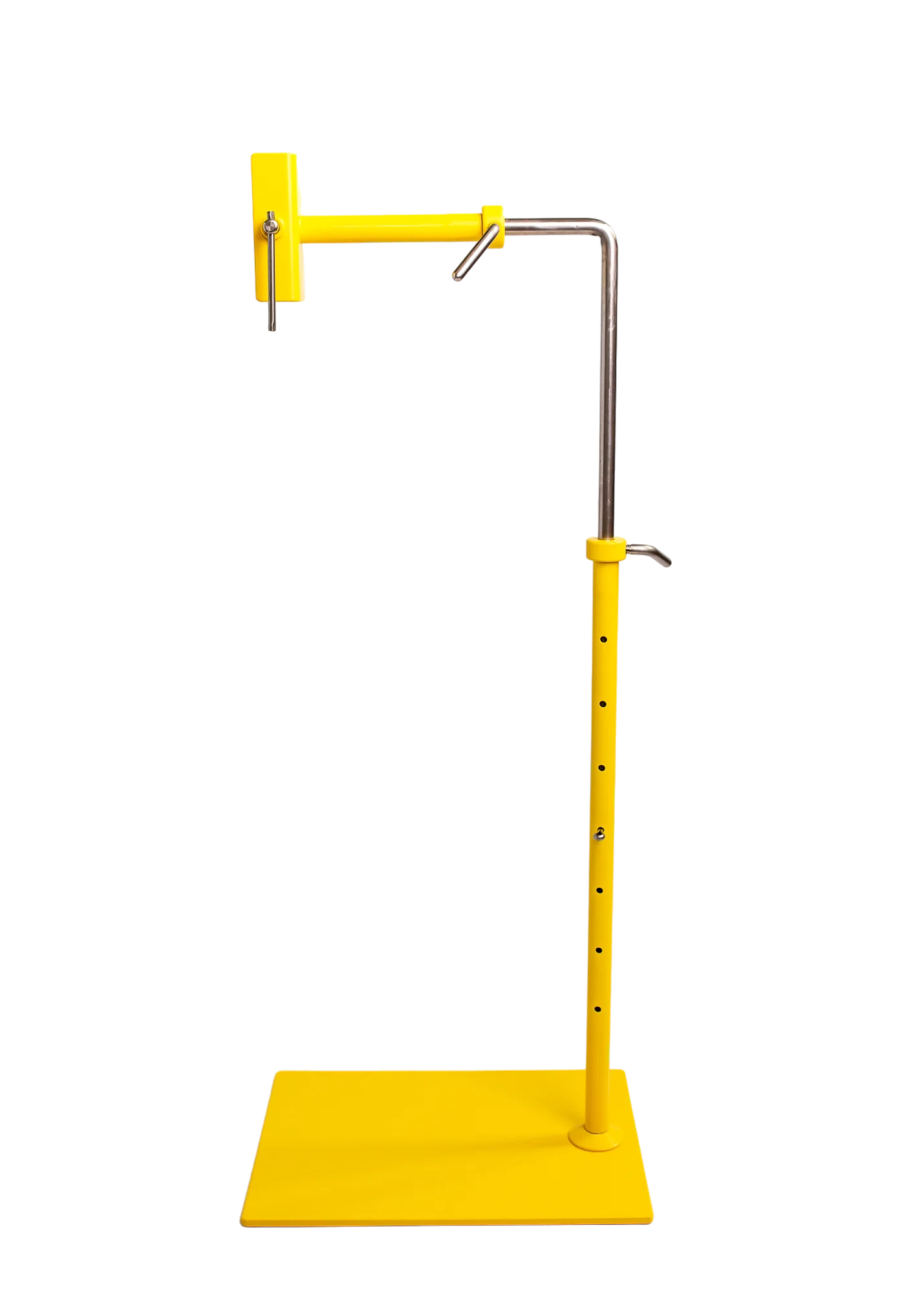 This Lowery Workstand in Saffron is powder coated in a sunny yellow. Delivered to you in a manageable box, ready for easy home assembly. This is a complete workstand with side clamp head. Why do we love the Lowery Workstands? They are simple, sturdy, and oh-so handy. Thanks to the well designed clamps, they work with almost any frames, stretcher bars, and embroidery hoops. So clamp in your favorite needlework frame and experience the beauty of stitching with both hands free. Lowery workstands are built by hand and built to last. They waste hardly a scrap of raw material in the manufacturing process, and all the water they use in manufacturing processes is harvested rain water. Approximate adjustments: Horizontal: 6 ½" - 9 ½" Vertical: 20"-34 ½" Approximate weight = 6.6 lbs