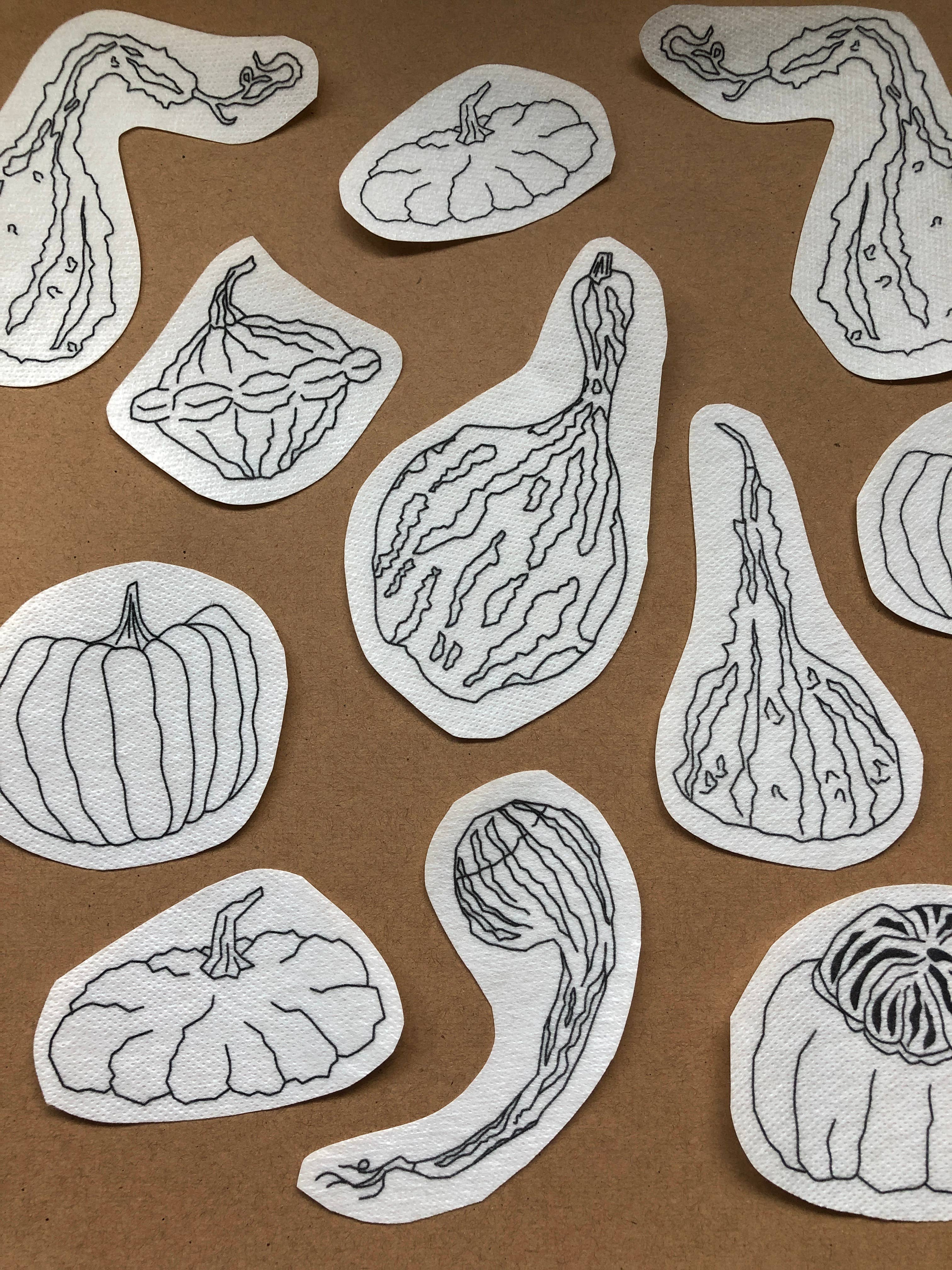 This is a pack of Peel, Stick, Stitch embroidery designs from M Creative J. These embroidery designs are perfect for adding fall details like gourds and pumpkins to your life.