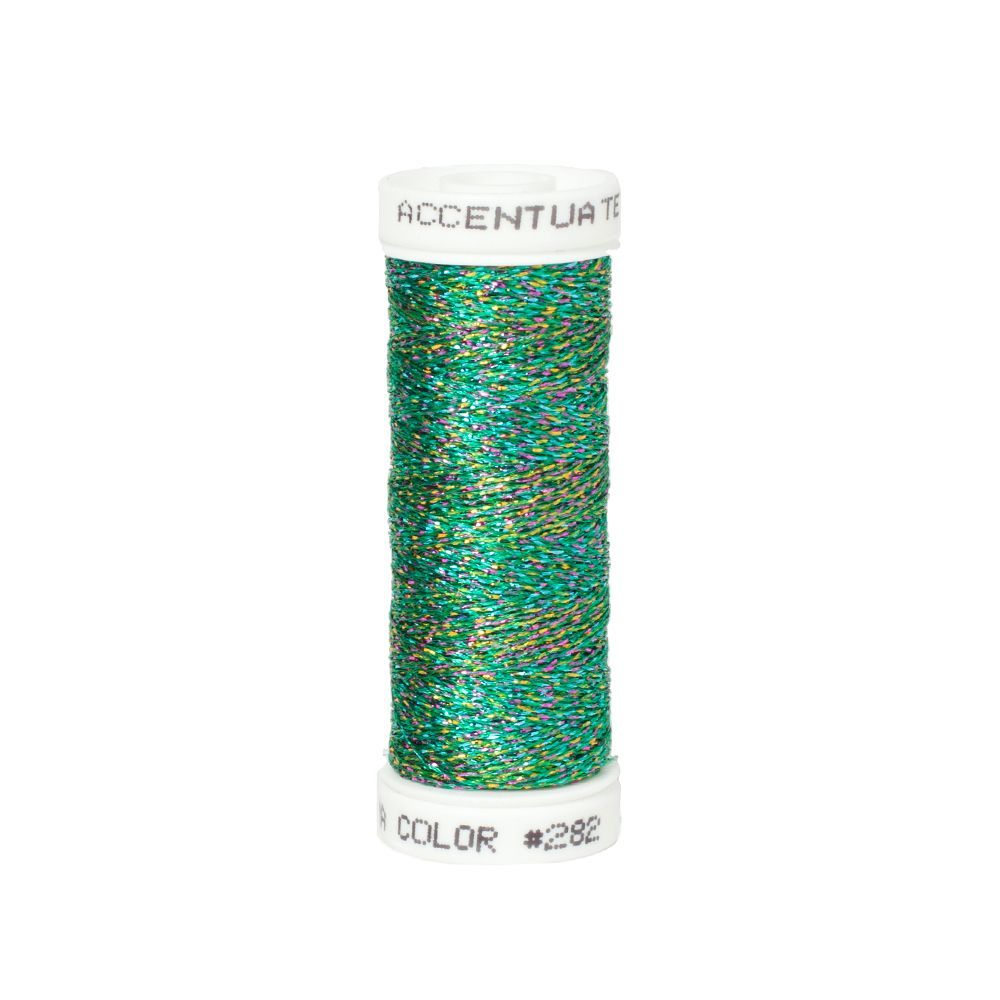 This is Accentuate Metallic from Madeira in color 282. Blending filament. Combine with any other thread to get the perfect iridescence and color!