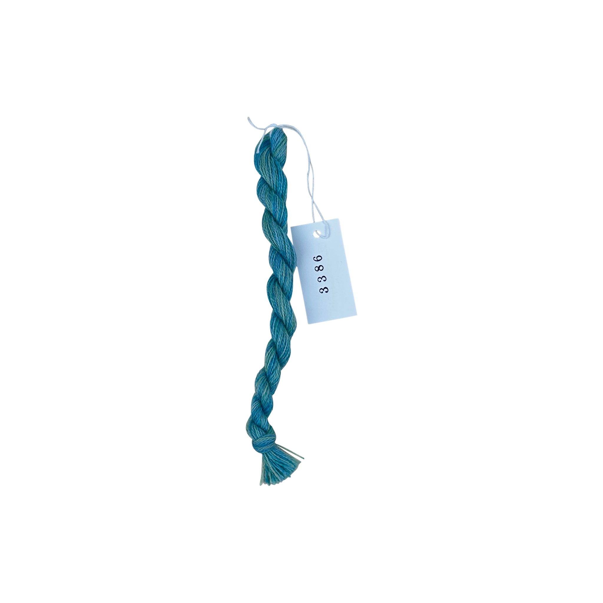 This is Burmilana in color 3386 Aquamarine Argyle from Madeira. Very finely spun wool blend; 80% Wool 20% Acrylic; 13/14m = 3-4 plies, 18m = 2-3 plies. Made in Germany. If you order multiple of the same color, we cannot guarantee that they will all be the same dye lot.