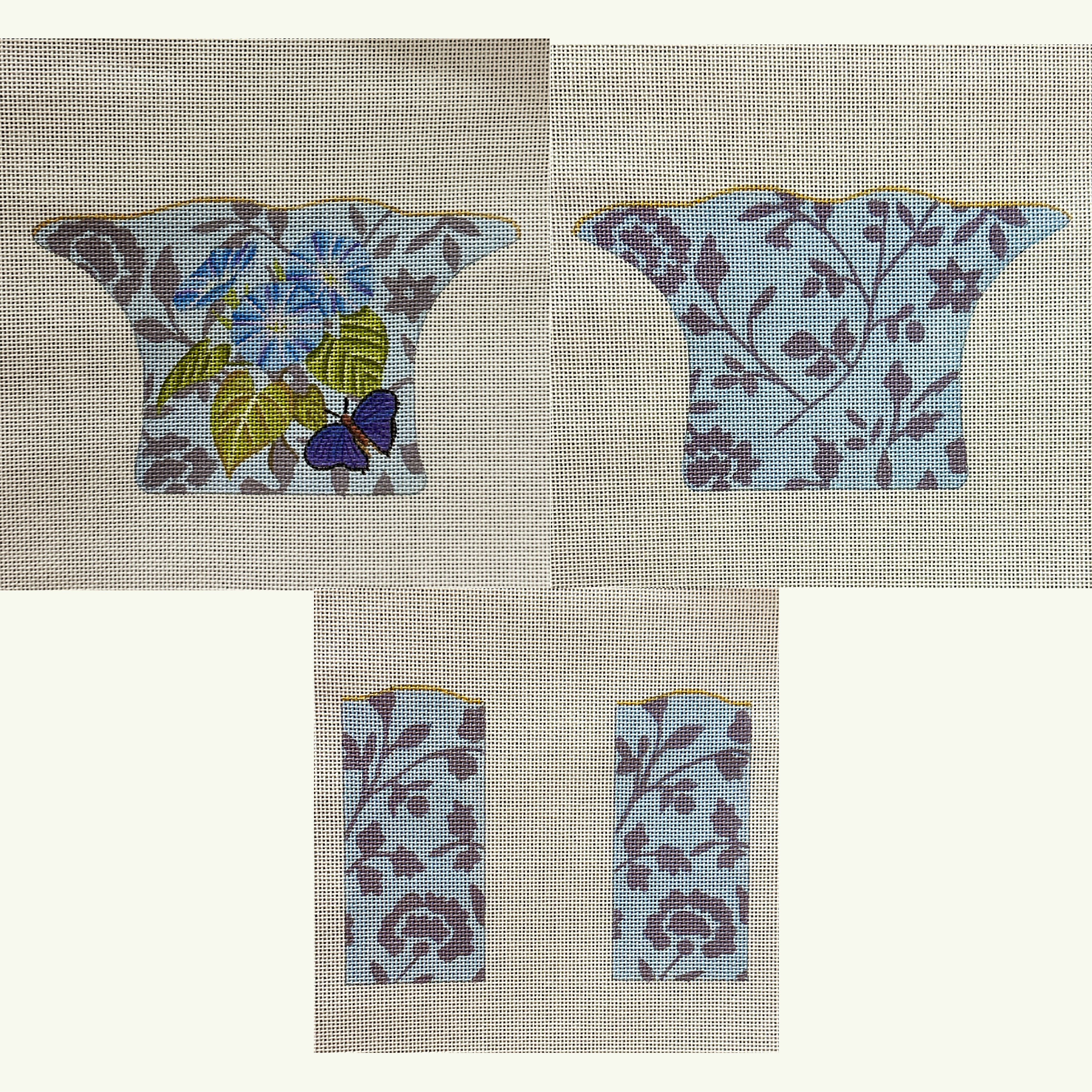 This is a set of 3 hand painted needlepoint canvases by Melissa Shirley Designs that are made to be finished into a 3D vase.