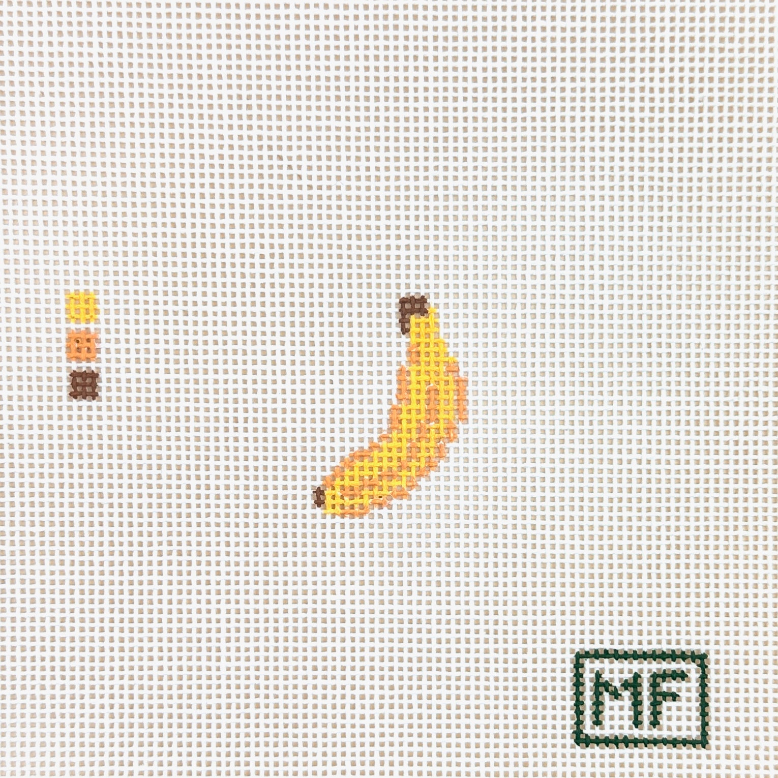 This is a hand painted needlepoint canvas from MF Needlepoint featuring a mini banana.