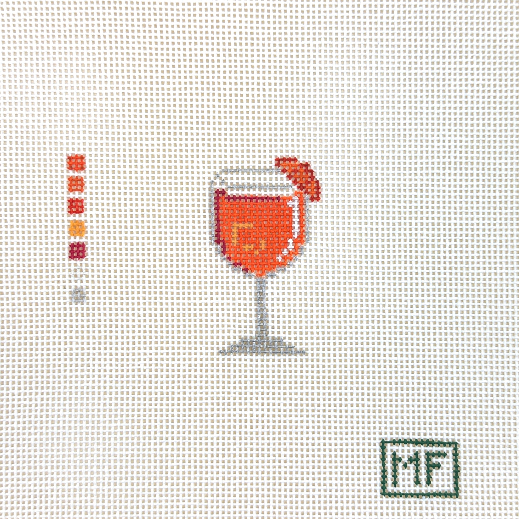 This is a hand painted needlepoint canvas from MF Needlepoint featuring a mini spritz cocktail.