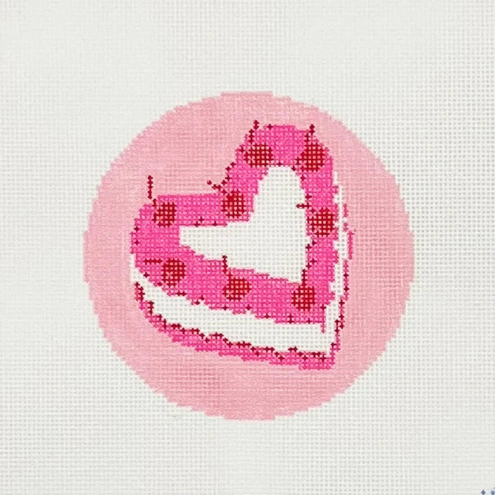 From Jenny Koland for Mopsey Designs, this hand painted needlepoint canvas features a delicious heart cake.