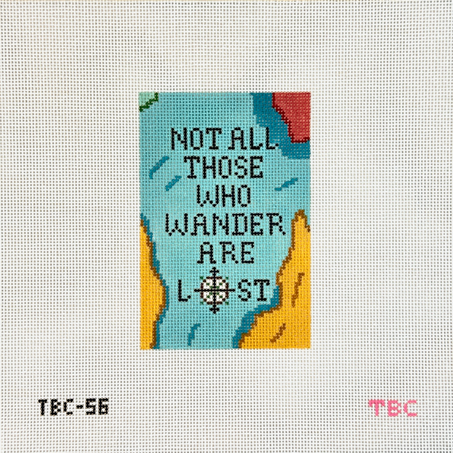 This hand painted needlepoint canvas by Mopsey Designs features the saying "Not all those who wander are lost".