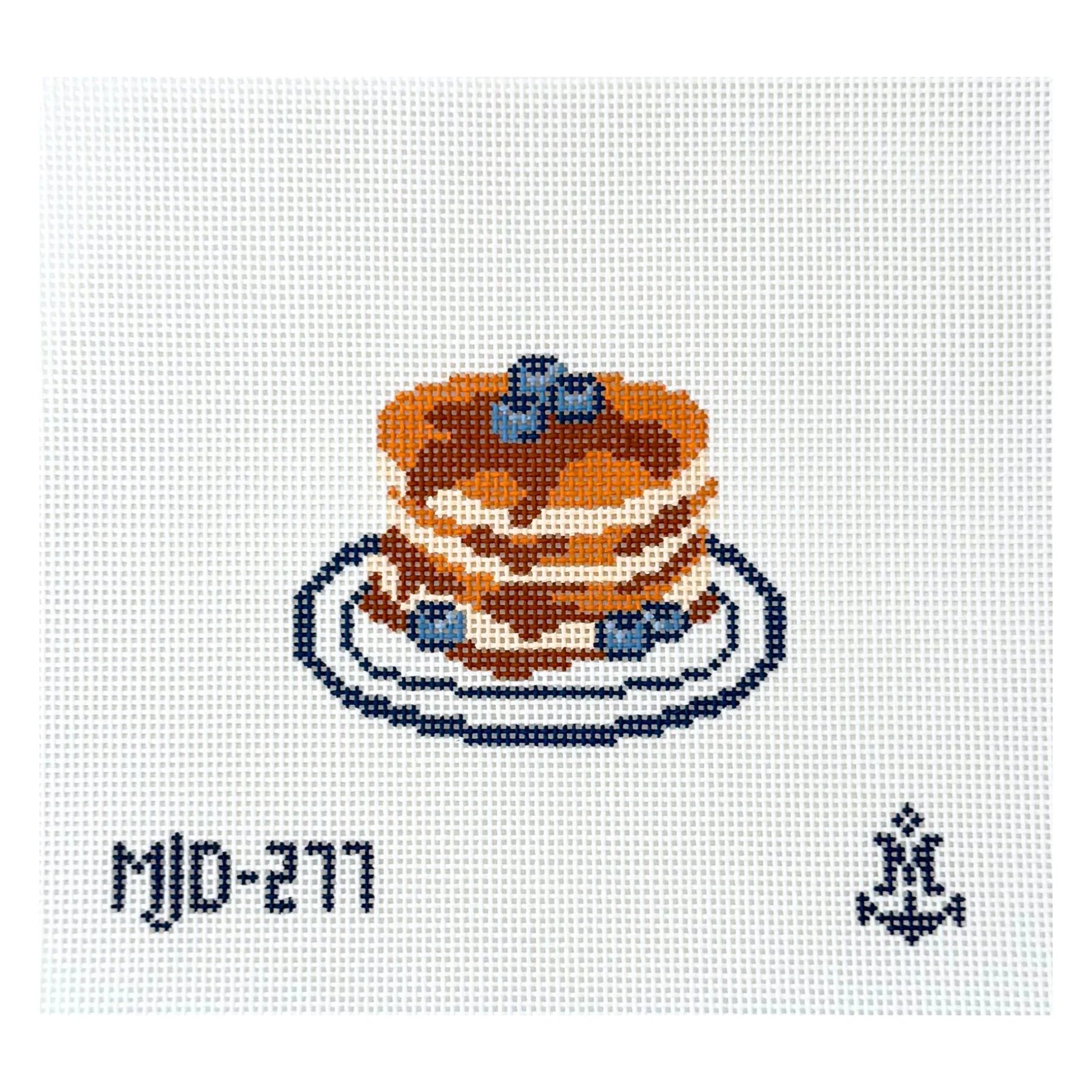 This hand painted needlepoint canvas by Morgan Julia Designs features a stack of blueberry pancakes.
