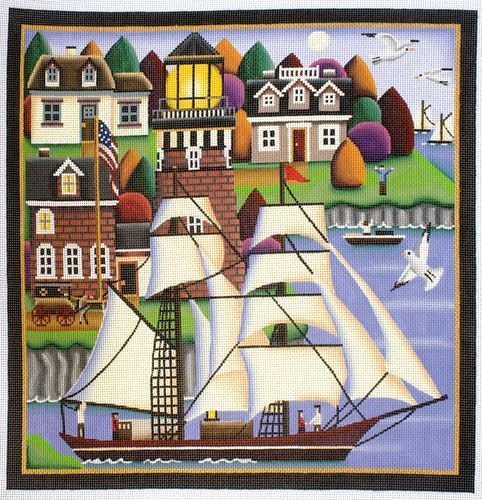 Rebecca Wood Designs Morning in the Harbor Needlepoint Canvas