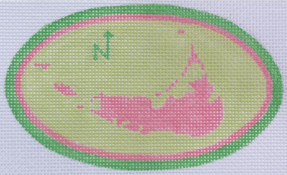 Kate Dickerson Needlepoint Collections Nantucket Map Mini Oval Needlepoint Canvas