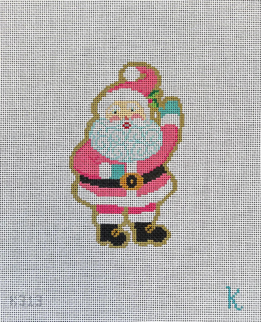 This hand painted needlepoint canvas from Ndlpt Designs features Santa shaped gingerbread cookie.