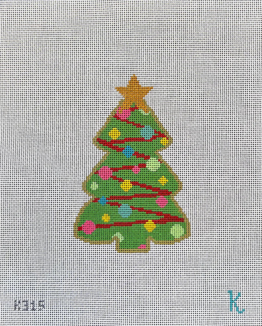 This hand painted needlepoint canvas from Ndlpt Designs features Christmas tree shaped gingerbread cookie.