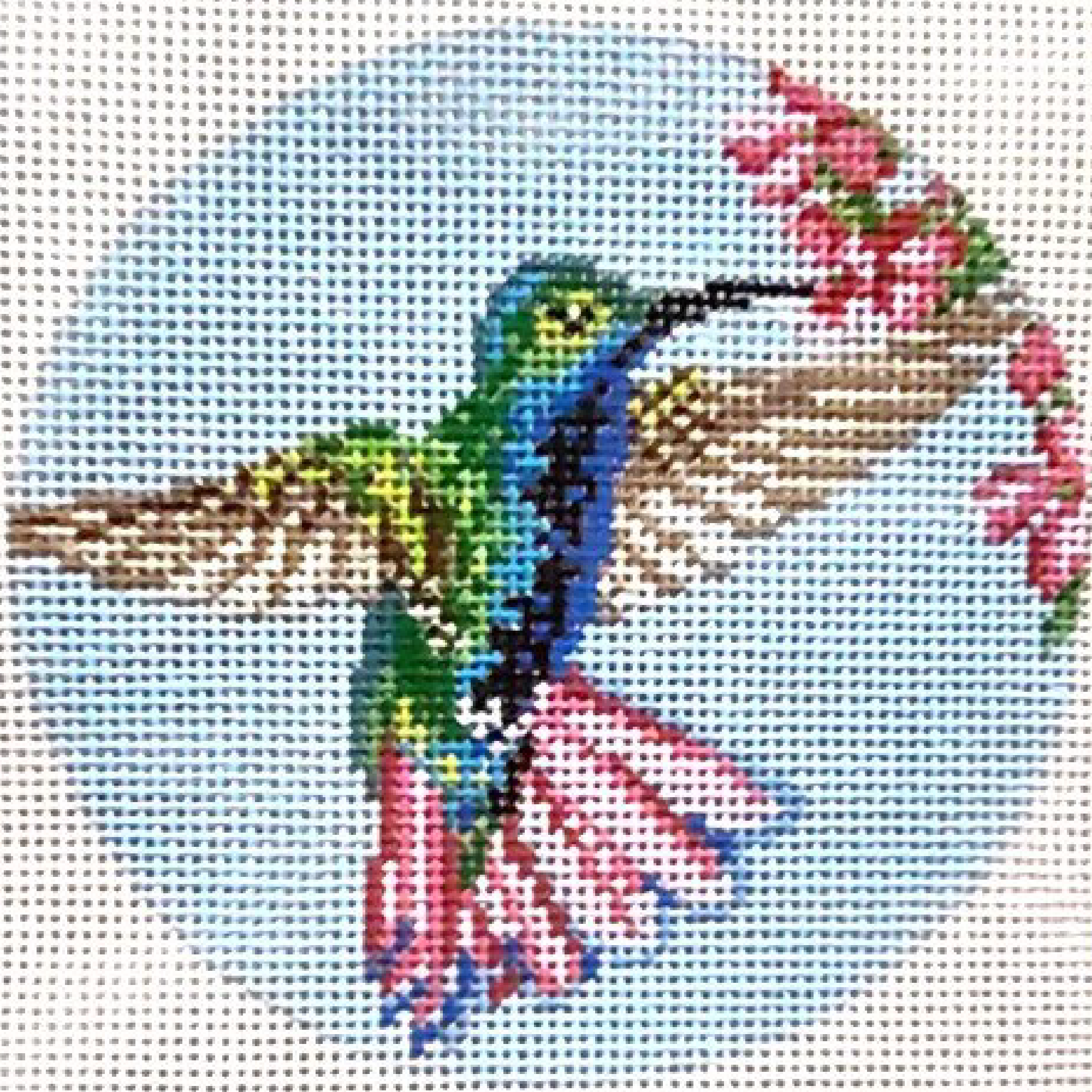 This hand painted needlepoint canvas by Needle Crossings features a beautiful black throated mango hummingbird.