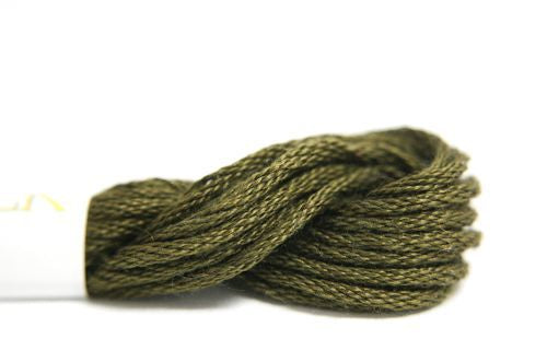 This is Silk from Needlepoint Inc in color 245 Moss Green Range. A stranded silk that is perfect for embroidery, needlepoint, and cross stitch. Use all 8 strands on 13 mesh, 3 or 4 strands on 18 mesh. 1 strand is about equal to one strand of DMC Cotton Floss.