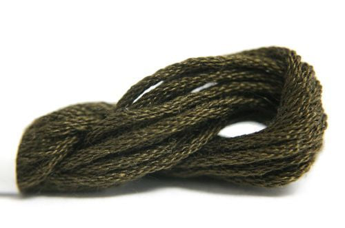 This is Silk from Needlepoint Inc in color 336 Avocado Green Range. A stranded silk that is perfect for embroidery, needlepoint, and cross stitch. Use all 8 strands on 13 mesh, 3 or 4 strands on 18 mesh. 1 strand is about equal to one strand of DMC Cotton Floss.