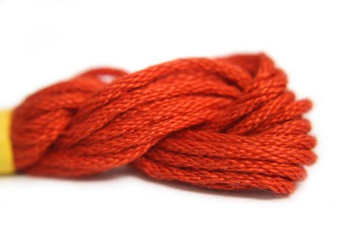 This is Silk from Needlepoint Inc in color 443 Persimmon Red Range. A stranded silk that is perfect for embroidery, needlepoint, and cross stitch. Use all 8 strands on 13 mesh, 3 or 4 strands on 18 mesh. 1 strand is about equal to one strand of DMC Cotton Floss.
