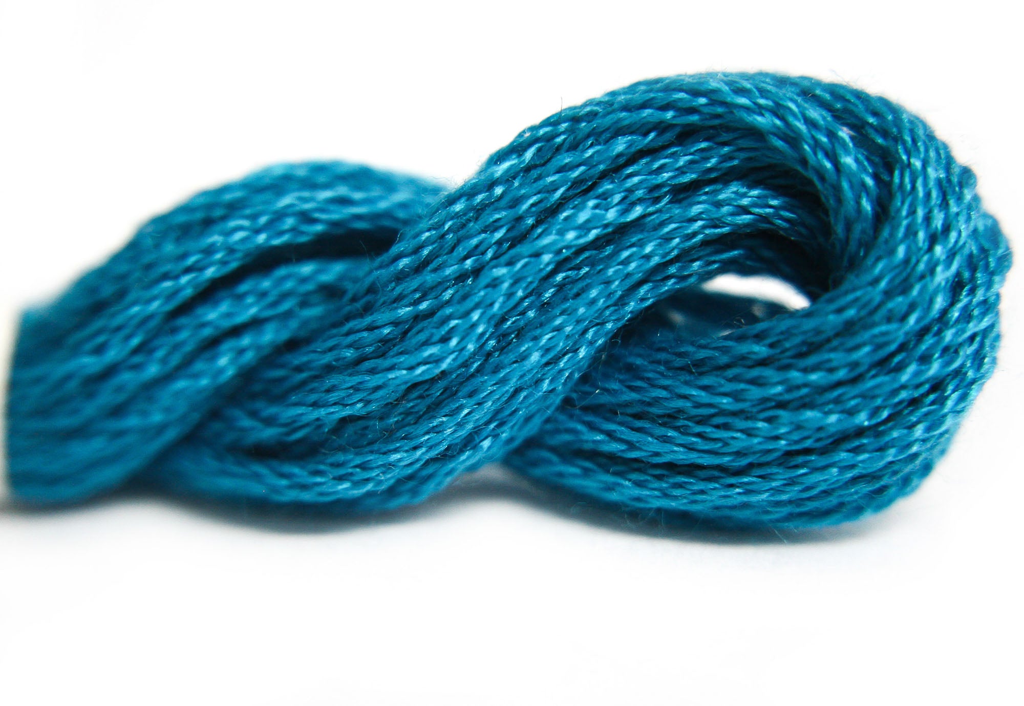 This is Silk from Needlepoint Inc in color 485 Azure Range. A stranded silk that is perfect for embroidery, needlepoint, and cross stitch. Use all 8 strands on 13 mesh, 3 or 4 strands on 18 mesh. 1 strand is about equal to one strand of DMC Cotton Floss.