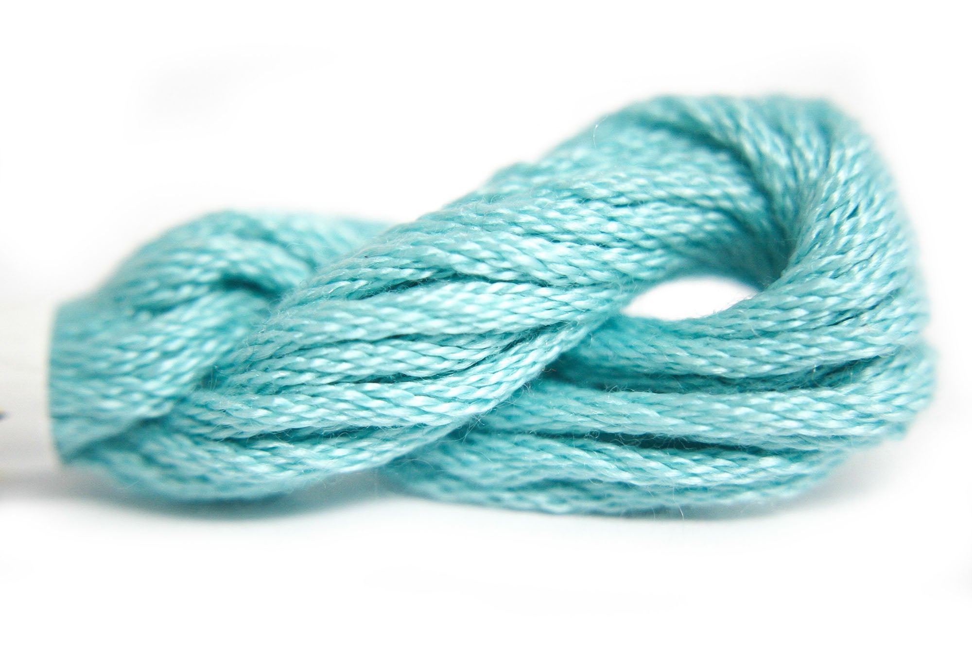 This is Silk from Needlepoint Inc in color 493 Ice Blue Range. A stranded silk that is perfect for embroidery, needlepoint, and cross stitch. Use all 8 strands on 13 mesh, 3 or 4 strands on 18 mesh. 1 strand is about equal to one strand of DMC Cotton Floss.