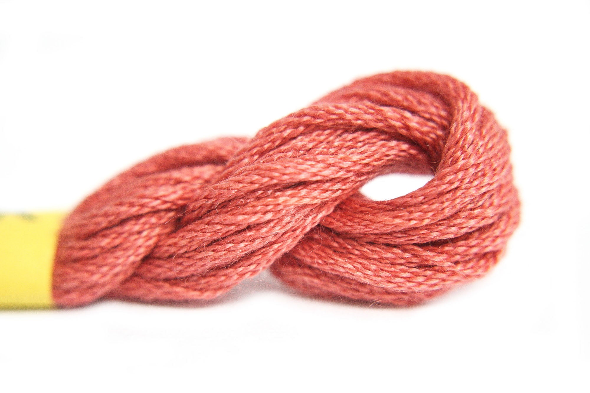 This is Silk from Needlepoint Inc in color 533 Salmon Range. A stranded silk that is perfect for embroidery, needlepoint, and cross stitch. Use all 8 strands on 13 mesh, 3 or 4 strands on 18 mesh. 1 strand is about equal to one strand of DMC Cotton Floss.