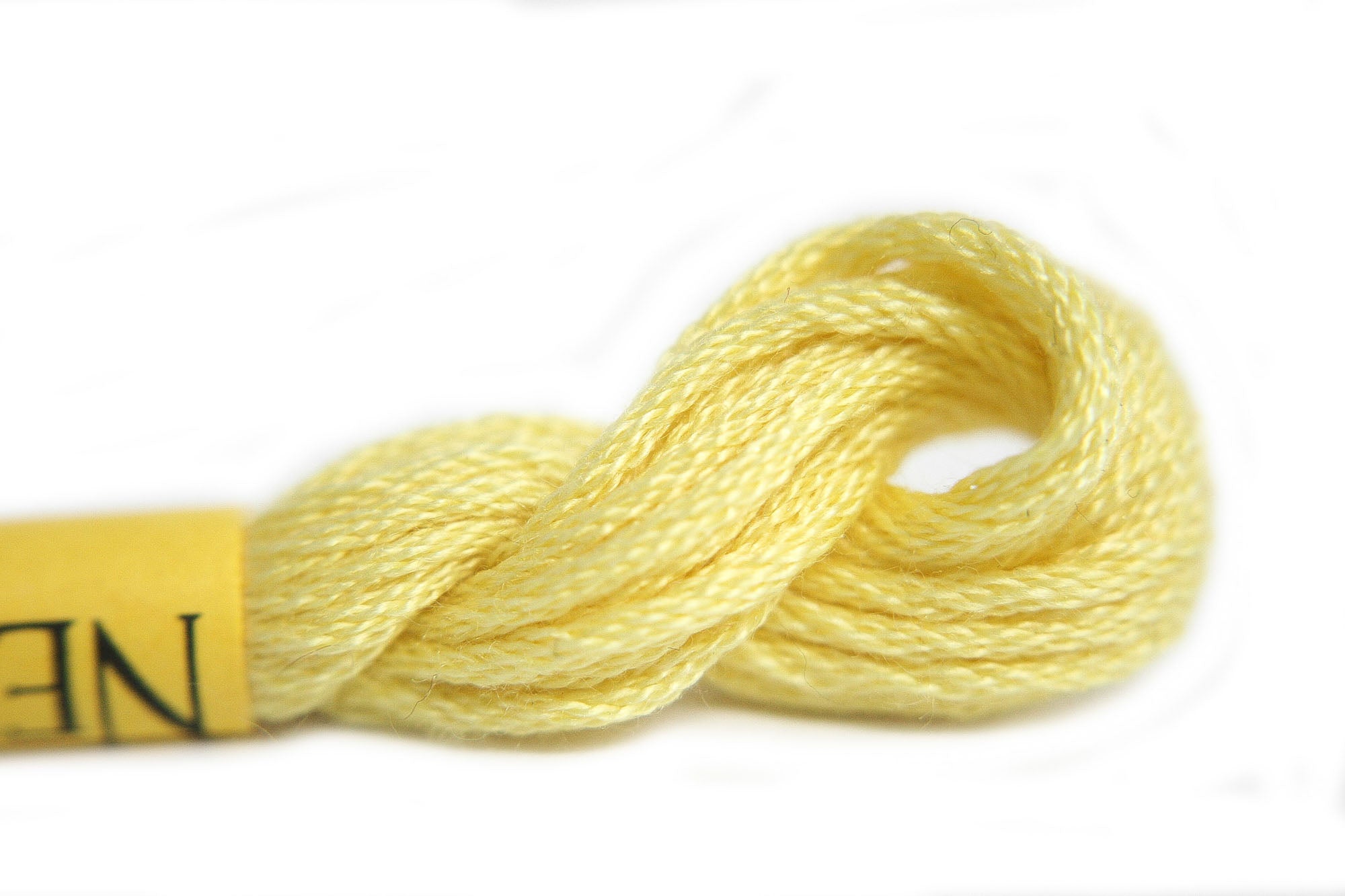 This is Silk from Needlepoint Inc in color 551 Canary Yellow Range. A stranded silk that is perfect for embroidery, needlepoint, and cross stitch. Use all 8 strands on 13 mesh, 3 or 4 strands on 18 mesh. 1 strand is about equal to one strand of DMC Cotton Floss.