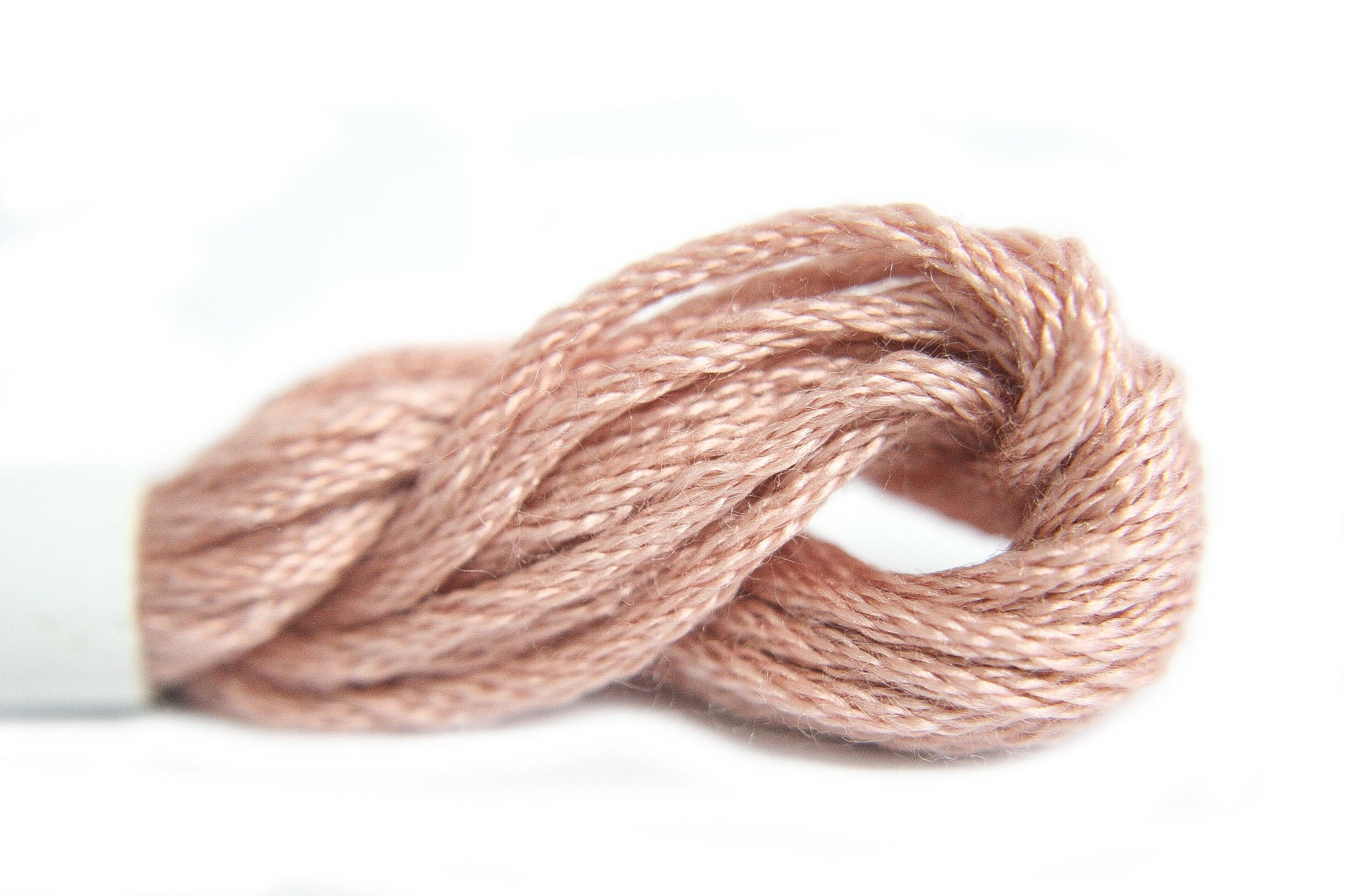 This is Silk from Needlepoint Inc in color 622 Coral Range. A stranded silk that is perfect for embroidery, needlepoint, and cross stitch. Use all 8 strands on 13 mesh, 3 or 4 strands on 18 mesh. 1 strand is about equal to one strand of DMC Cotton Floss.