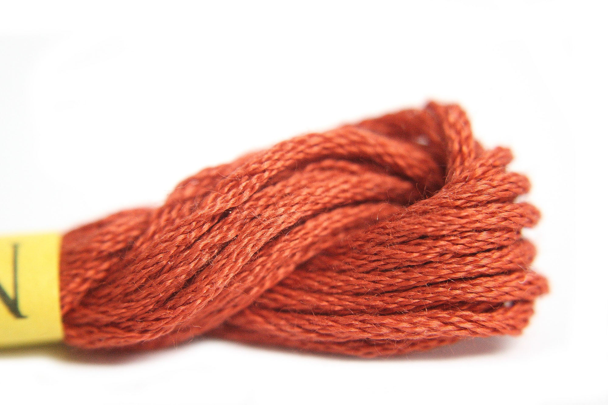 This is Silk from Needlepoint Inc in color 626 Coral Range. A stranded silk that is perfect for embroidery, needlepoint, and cross stitch. Use all 8 strands on 13 mesh, 3 or 4 strands on 18 mesh. 1 strand is about equal to one strand of DMC Cotton Floss.