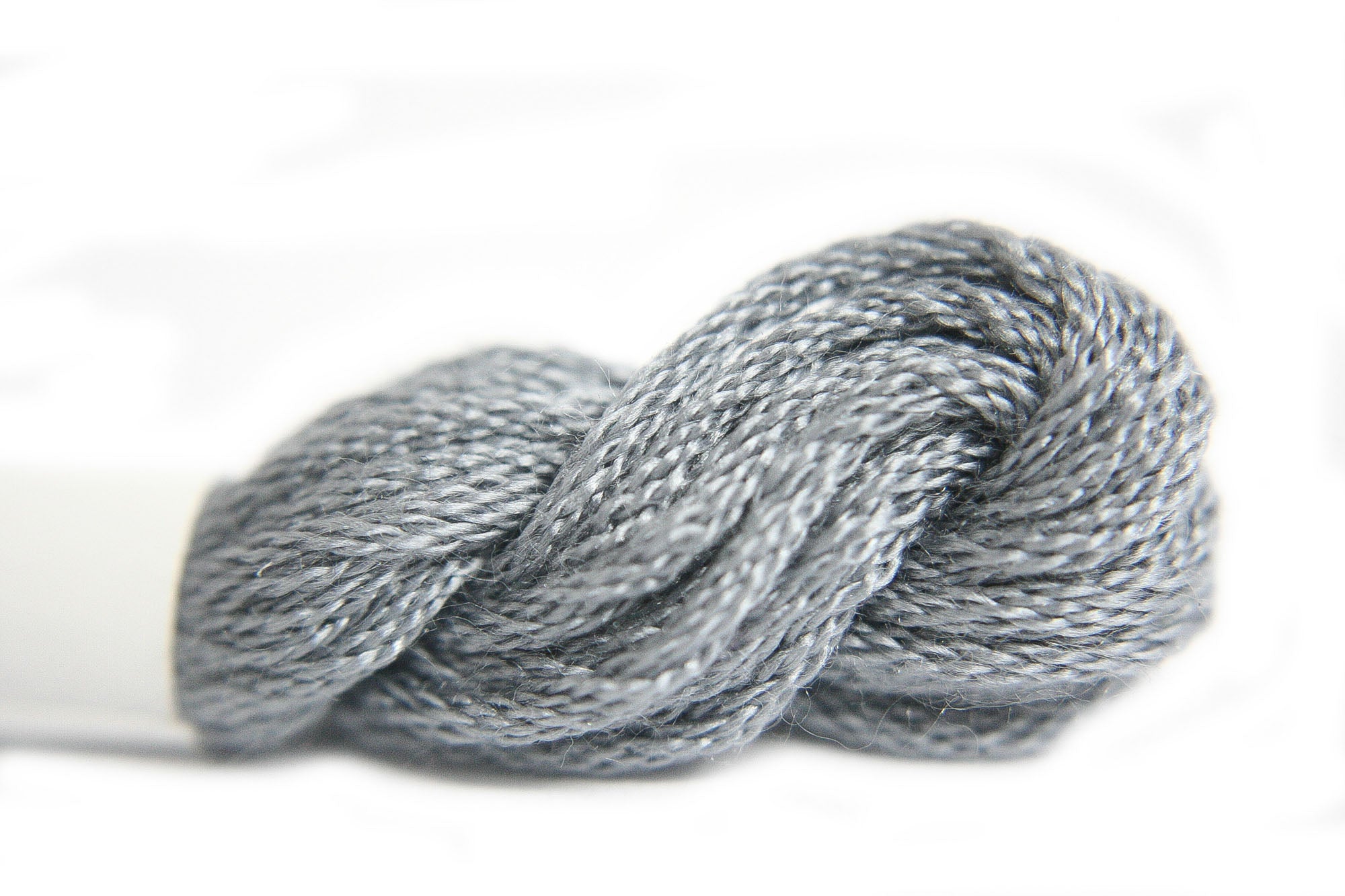 This is Silk from Needlepoint Inc in color 673 Pearl Gray Range. A stranded silk that is perfect for embroidery, needlepoint, and cross stitch. Use all 8 strands on 13 mesh, 3 or 4 strands on 18 mesh. 1 strand is about equal to one strand of DMC Cotton Floss.