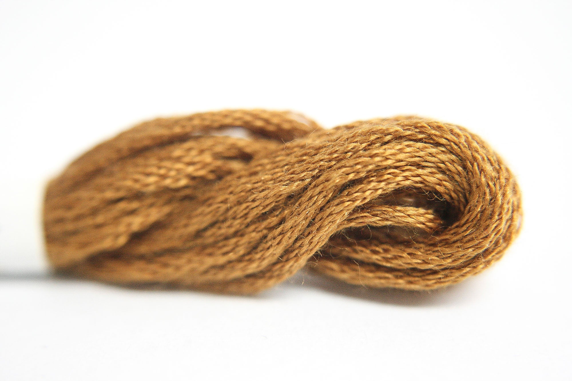 This is Silk from Needlepoint Inc in color 696 Palomino Gold Range. A stranded silk that is perfect for embroidery, needlepoint, and cross stitch. Use all 8 strands on 13 mesh, 3 or 4 strands on 18 mesh. 1 strand is about equal to one strand of DMC Cotton Floss.
