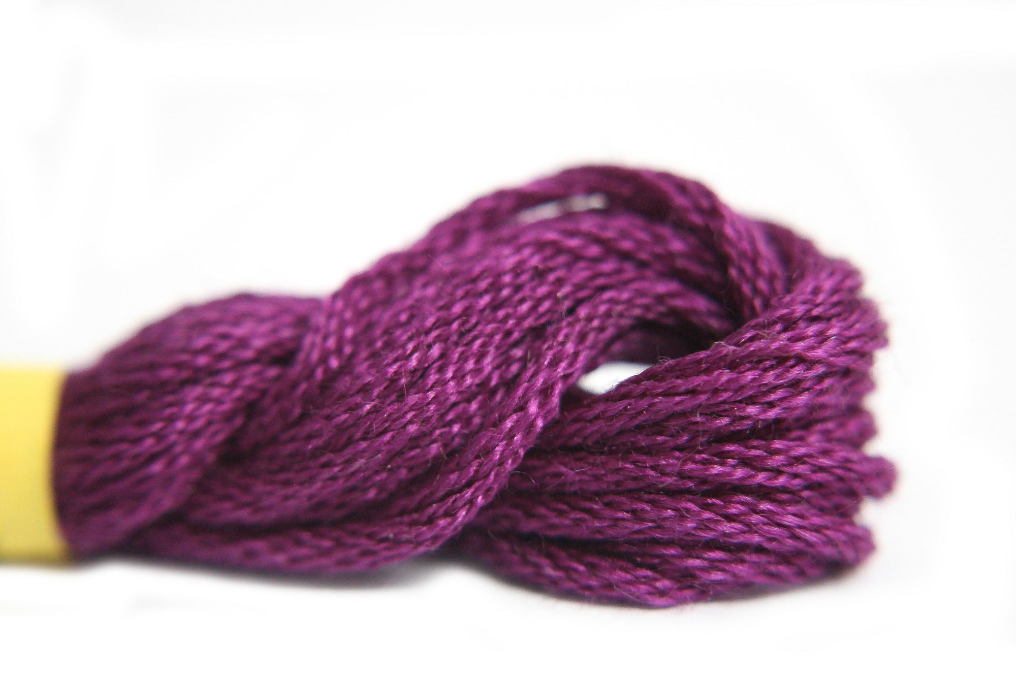 This is Silk from Needlepoint Inc in color 804 Magenta Range. A stranded silk that is perfect for embroidery, needlepoint, and cross stitch. Use all 8 strands on 13 mesh, 3 or 4 strands on 18 mesh. 1 strand is about equal to one strand of DMC Cotton Floss.